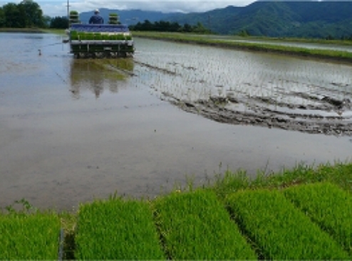 農作業の全面受託 耕起(23ha)、代掻き、田植え、稲刈りまで、大型機械でスピーディーに対応。