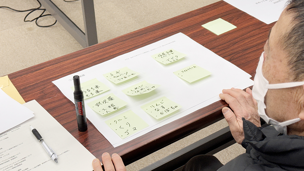 (1) ワークショップ:地域資源の洗い出し/開発したい商品イメージ/共有/総評