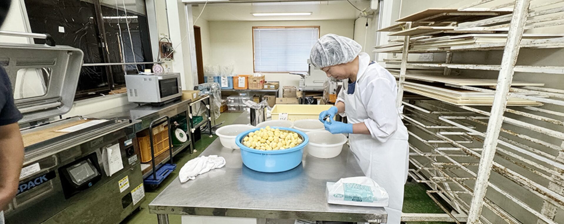 施設内では、紅はるかを中心とした干し芋製造を行う「おいもちゃん」も活動しています。自前の乾燥機を持ち込むなど工夫を凝らしていますが、繁忙期が重なることによるスペース確保の難しさもあり、より最適な製造環境を求めて移転も視野に入れています。